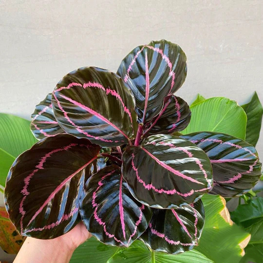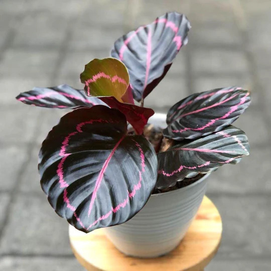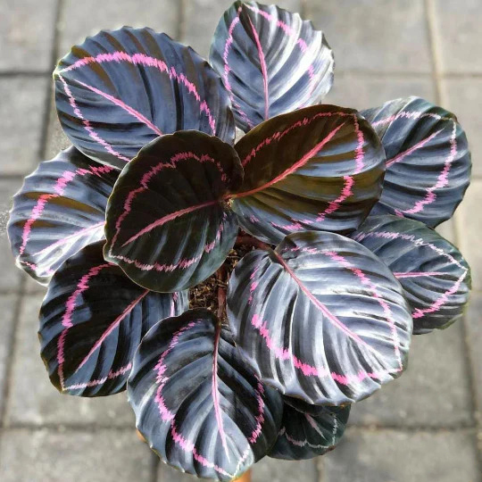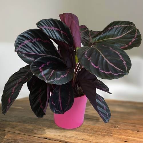 Calathea are decorative foliage plants grown for their vibrant leaf colourings and patterns. Keep lightly moist and fertilise regularly with a soluble fertiliser during the growing season. Enjoys a warm, humid environment with medium to bright, indirect light.