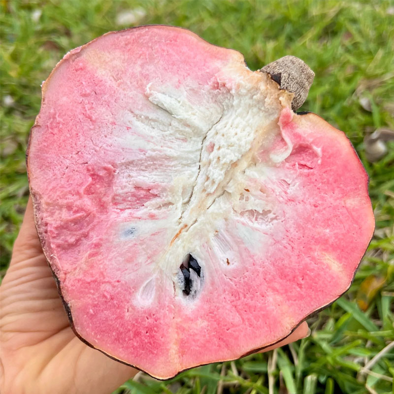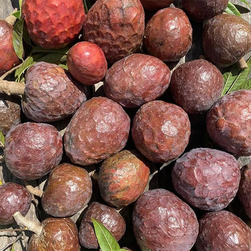 - Cultivation: The Red Custard Apple Tree prefers well-drained, fertile soils for optimal growth. When planting from seeds, it's recommended to soak the seeds in water for a day or two before sowing them in a seed tray or directly in the ground. Germination usually takes several weeks, and young seedlings need protection from direct sunlight until they become established.