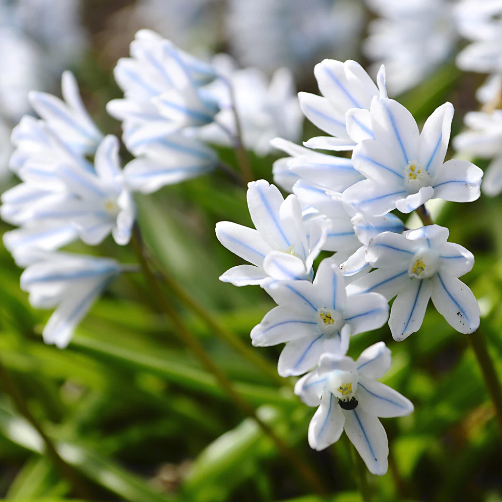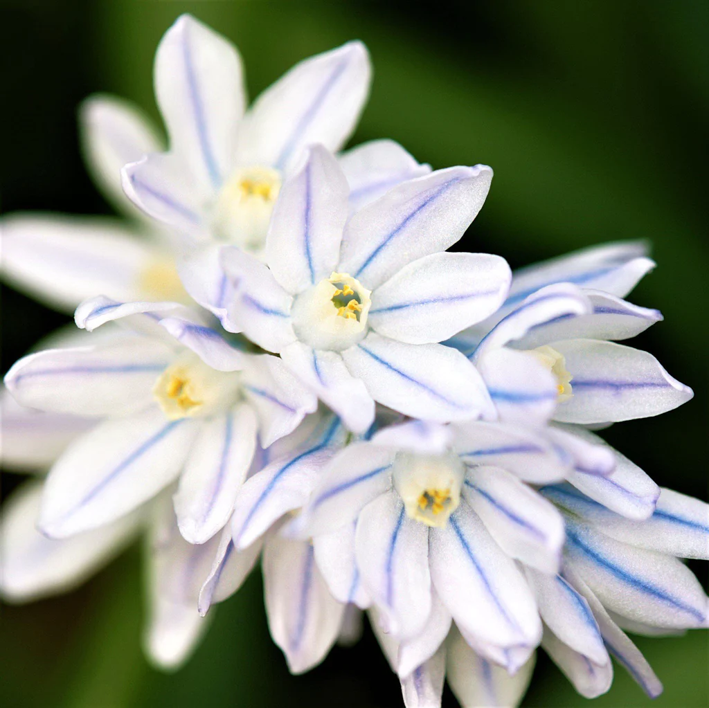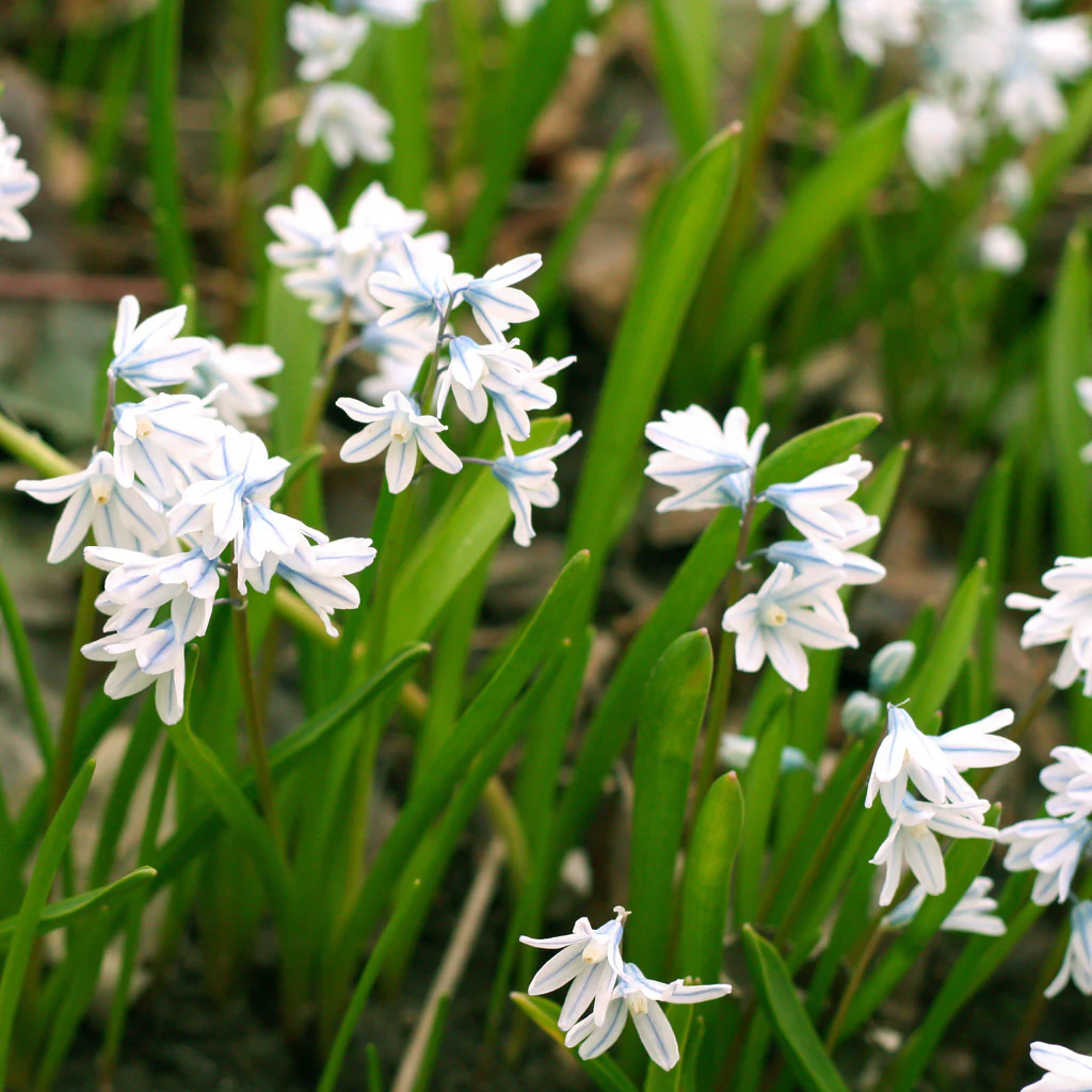 The bright white/blue flowers of the Striped Squill (Puschkinia Libanotica) are one of the very first of the spring blooming bulbs to brighten up the landscape. They carry a slight sweet fragrance and work great for mass planting and naturalizing. Try planting these in your "hard to grow" lawn areas for a nice groundcover effect!