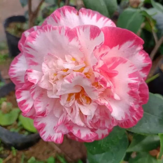 🌹Camellia Japonica Margaret Davis is a well-loved early flowering camellia that was introduced in 1963 in Australia and has remained popular ever since. It is a regular winner at flower shows around the world thanks to its stunning blooms. The pale buds open to creamy white ruffled flowers with a distinctive raspberry-rippled edge. The peony-form flowers come early, appearing in late winter into early spring. The flowers are large measuring up to 10 cm across.
