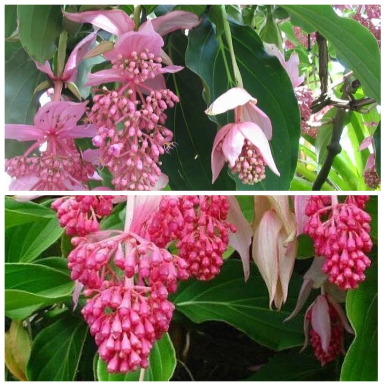 Rose Grape (Medinilla magnifica) also called Showy Medinilla, Pink Lantern or Philippines Orchid bears spectacular pendant rosy pink flower-heads is a spectacular addition to any houseplant collection,