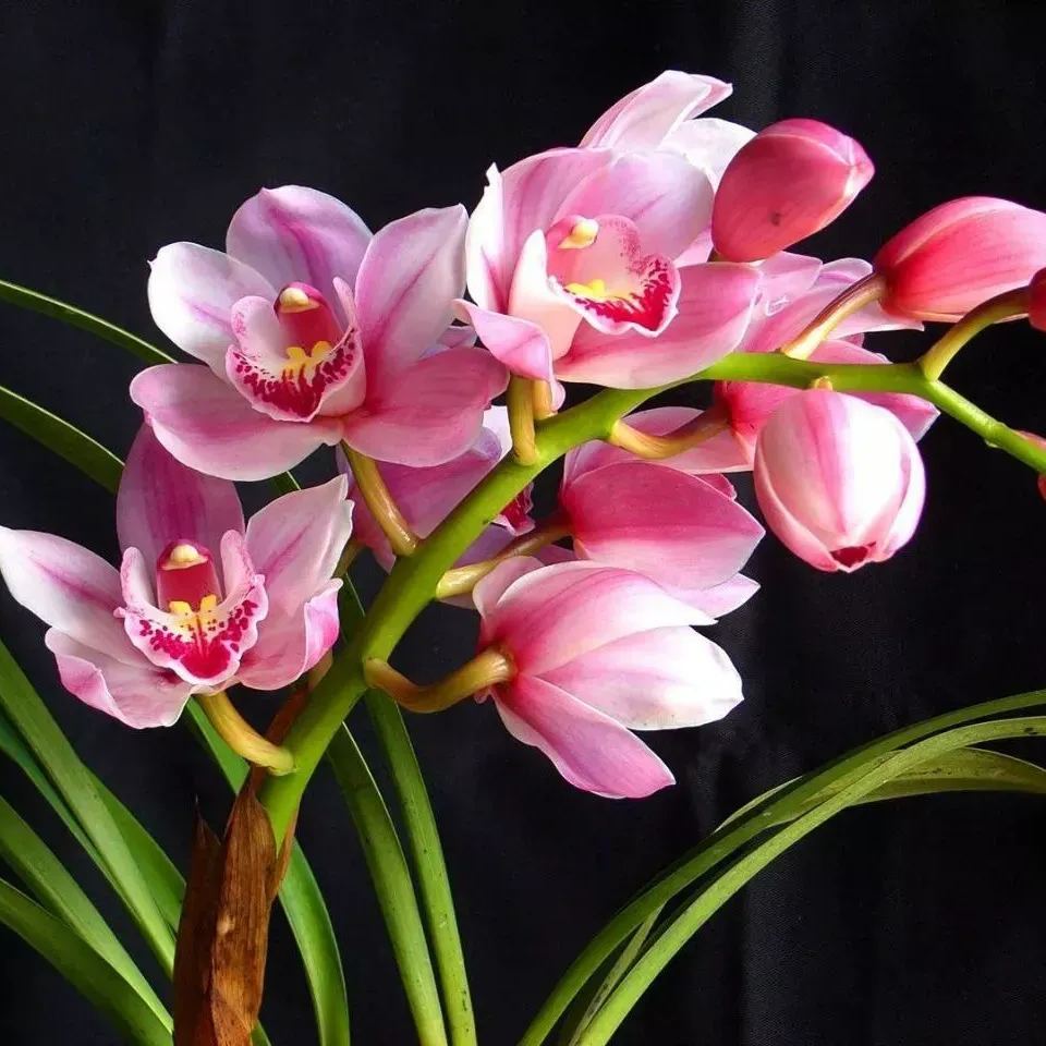 For best results grow Cymbidium orchids in a well-lit room away from direct sunlight. Cymbidiums prefer cooler growing conditions than other orchid varieties, and to flower well they require a distinct drop in temperature between day and night from mid- to late summer. It is possible to transfer cymbidiums outdoors in summer, but do keep them out of direct sunlight to prevent leaf scorch. Many of these flowers have the added appeal of fragrance! Their popular flower types and elegant long leaves make Cymbidium orchids attractive as indoor plants.