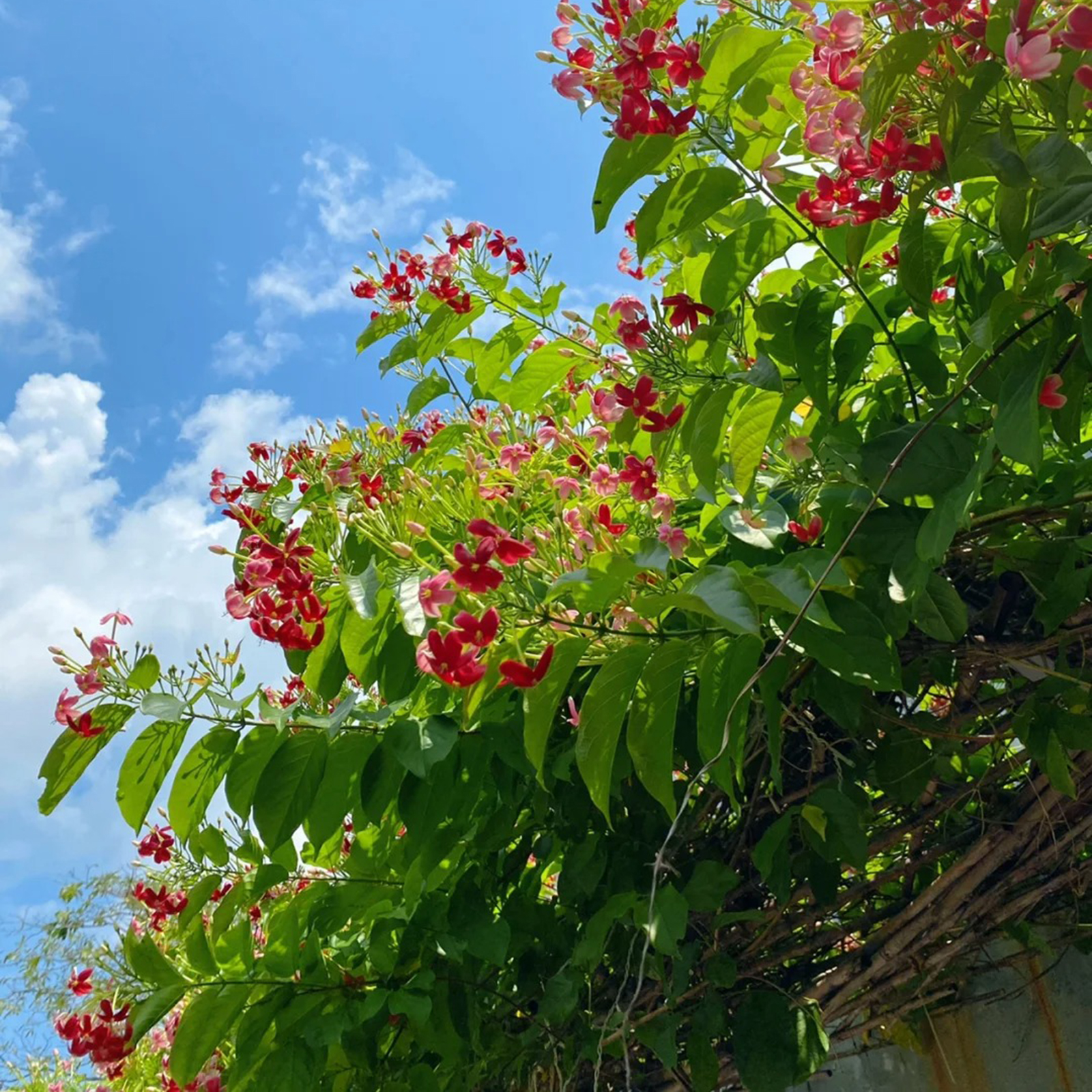 Blooming in April every year, the flowers are red and white, very colorful and eye-catching. Flower color will go through three changes, the first bloom white, the next day into pink, to the evening and then into red, after three or four days and then into purple-red, can be called the flower of the "chameleon", very interesting. Although the flowering period of a single flower is short, there is another one after it has finished blooming, and the overall flowering period is up to 210 days! The leaves are evergreen and have a special scent that repels insects. Resistant to disease and heat, it is always available on the flower wall!