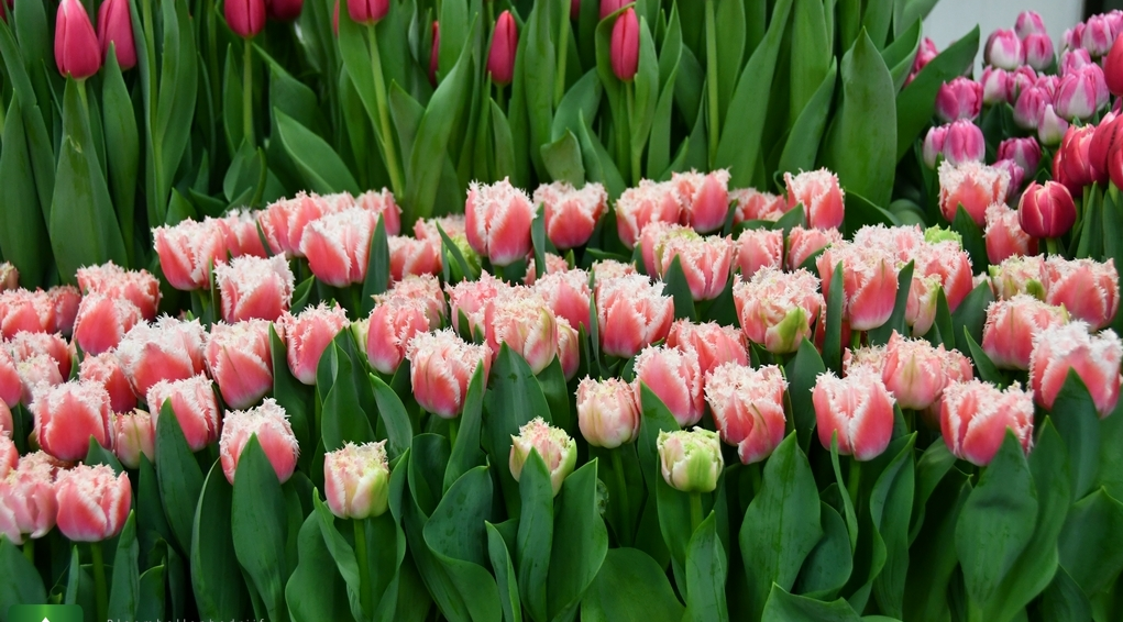 Tulip Canasta (Tassel Tulip 'Canasta') – late-flowering variety. The flowers are carmine red with a white border and white needle-like tassels. It is small in size, has an elegant cup shape, and is well preserved in bright sunlight. The glass has a height and diameter of approximately 5 cm and is a reliable variety. The peduncle is thick, dense and straight. Versatile forcing and cutting varieties. Plant height 35-45 cm, flowering period - mid to late May.
