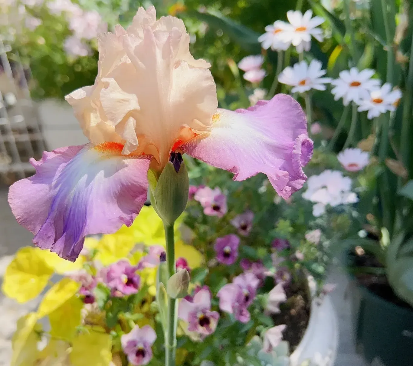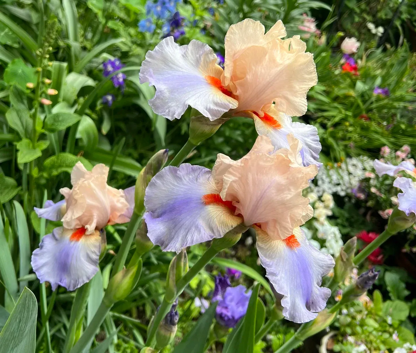Iris 'French Cancan' - a variety with subdued colors, well suited to creating pastel borders and romantic corners.