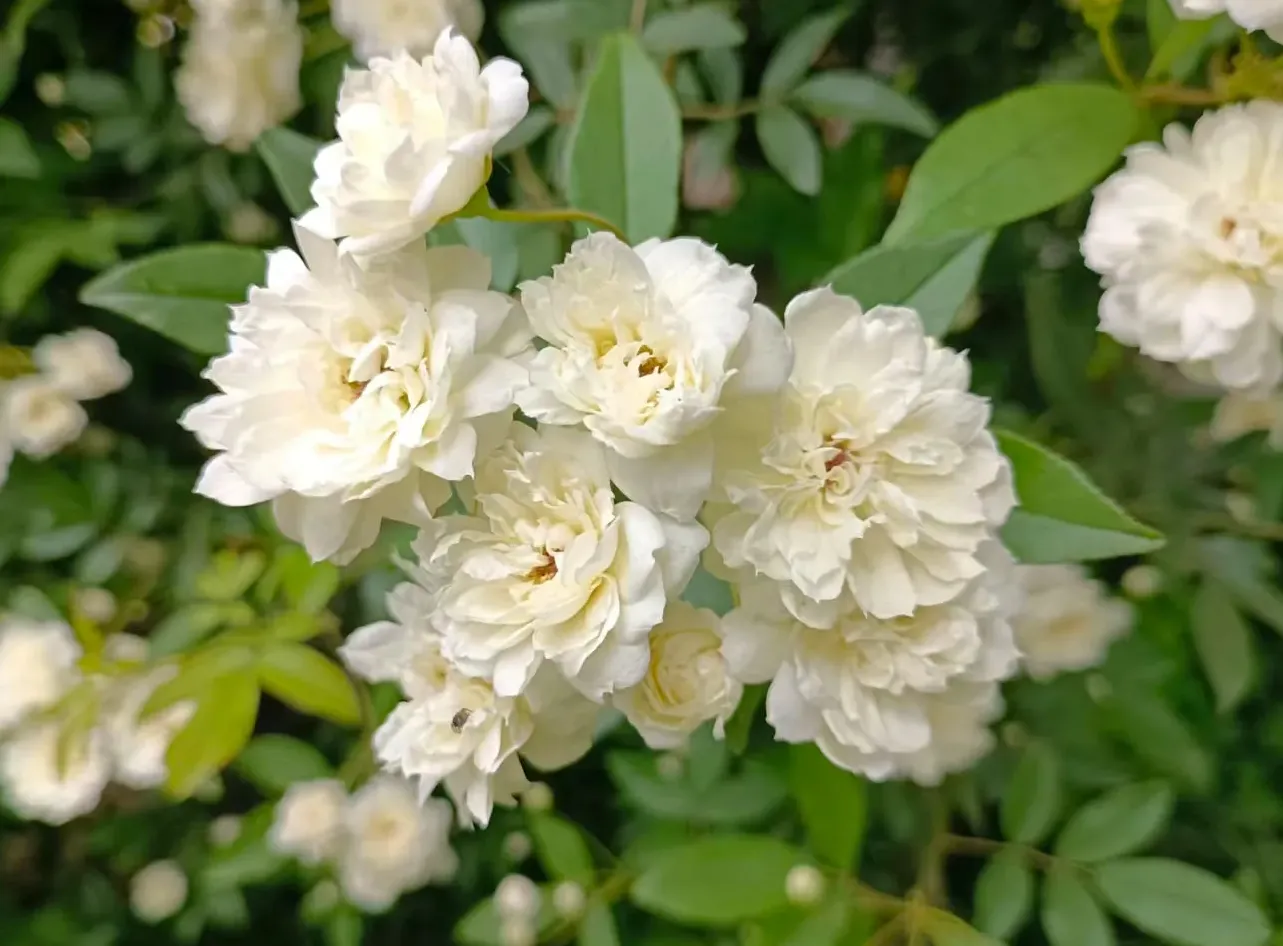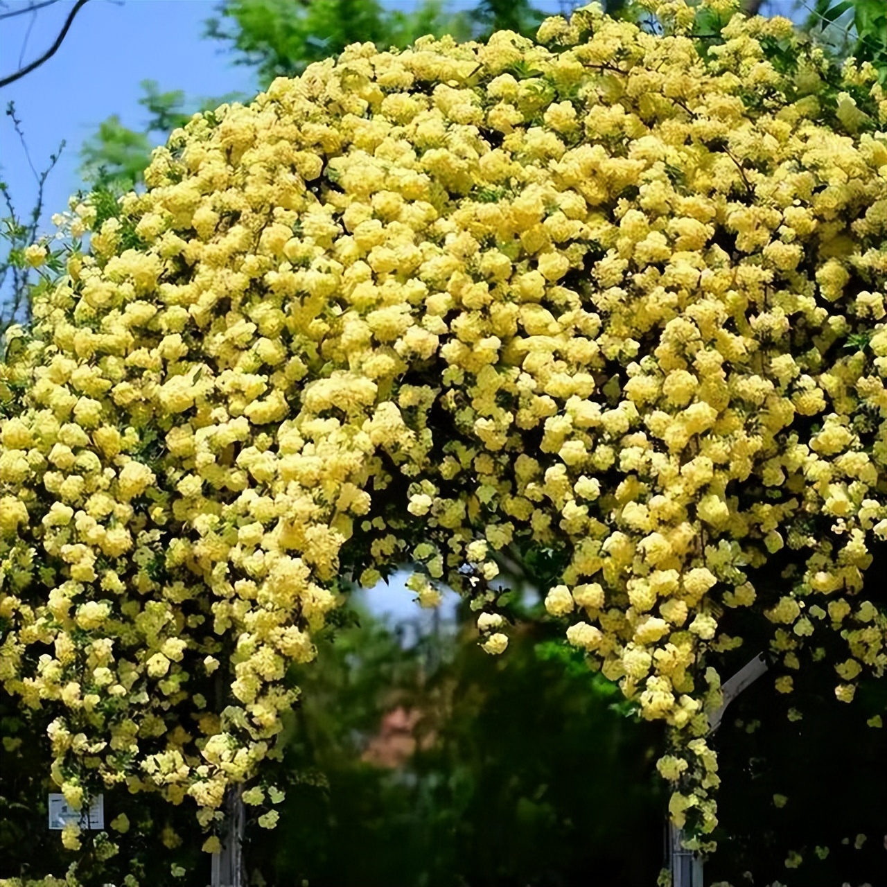 While all three colors have their merits, the white Lady Banks' Rose blooms like snowflakes on green foliage, creating a beautiful snowy scene, and its scent is the strongest.