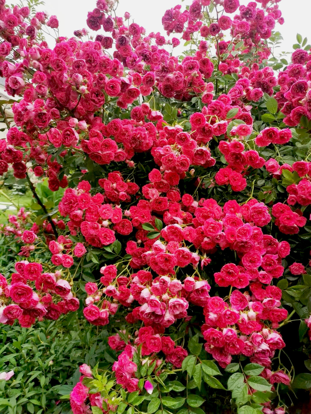 Lady Banks' Rose is an amazing wall climber, taking over an entire wall in just two years from spring to fall, with tough branches that extend farther than those of climbing moonflowers. While ordinary climbing moonflowers are limited to four or five meters in length, Lady Banks' Rose can reach six meters, and after topping, lateral branches continue to grow out from the main stem to form a perfect wall of flowers.