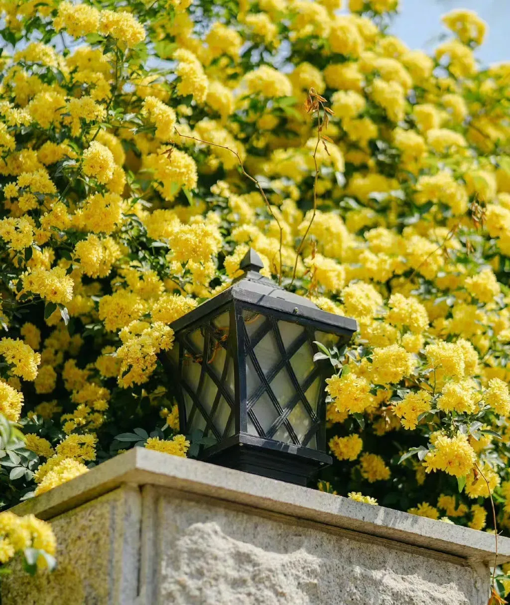 Lady Banks' Rose thrives in full sun to partial shade. It performs best when exposed to plenty of sunlight, contributing to abundant flowering.