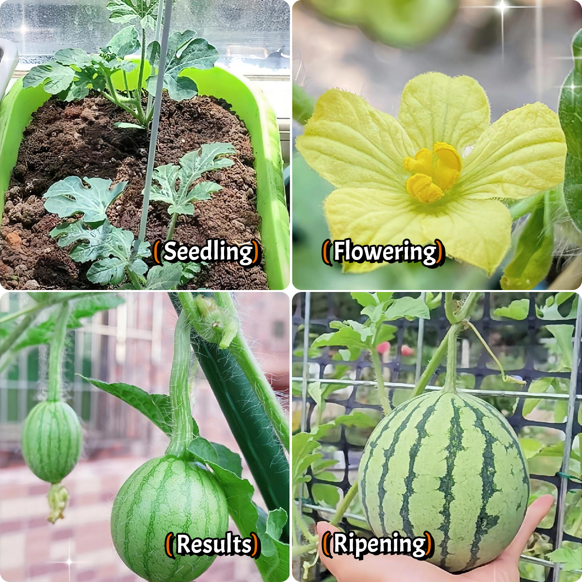🍉 Harvest: Look for a deep green color and a hollow sound when tapped – your watermelon is ready!