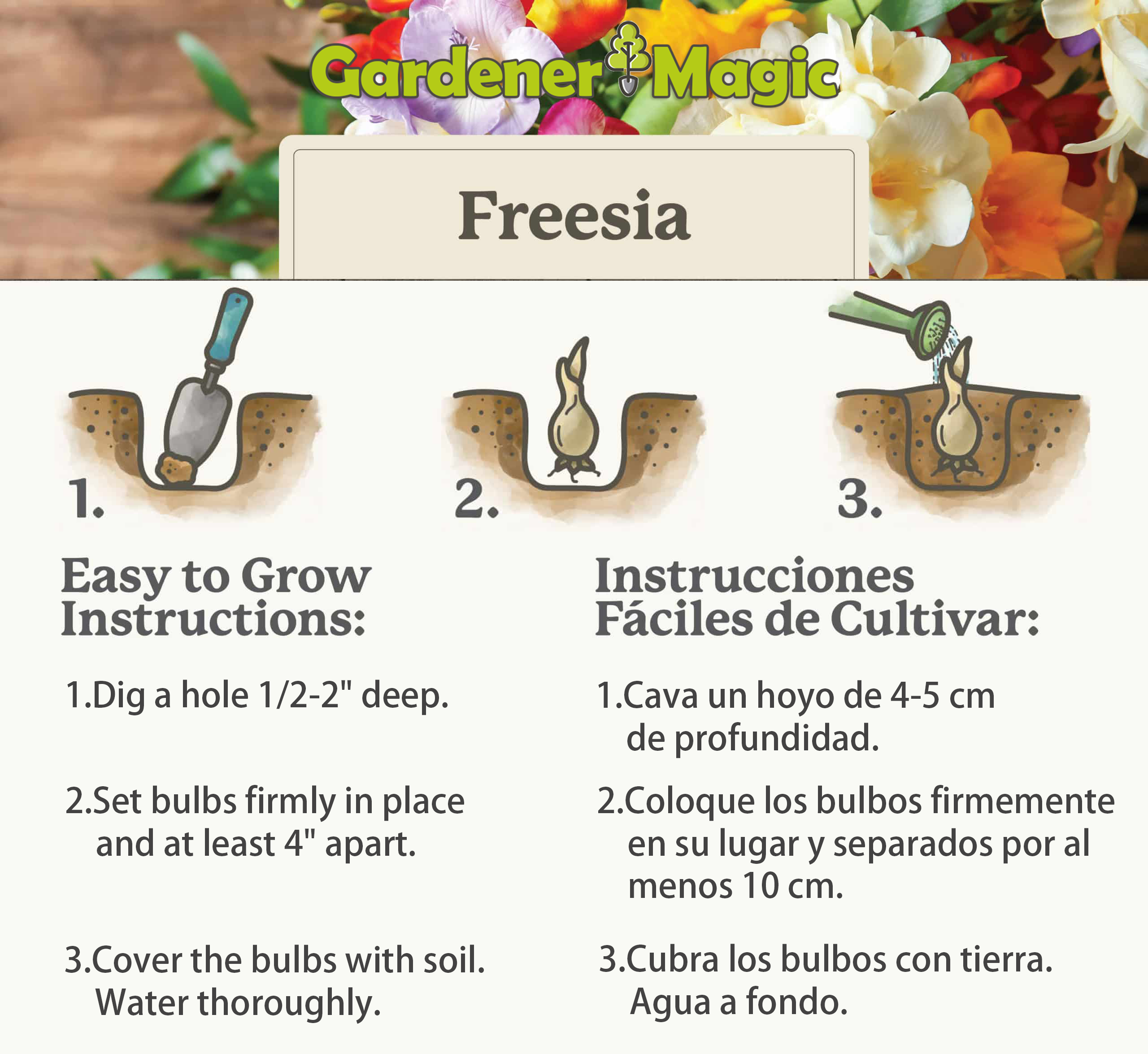 - Soak Freesia Bulbs in warm water for 24 hours before planting to enhance germination.