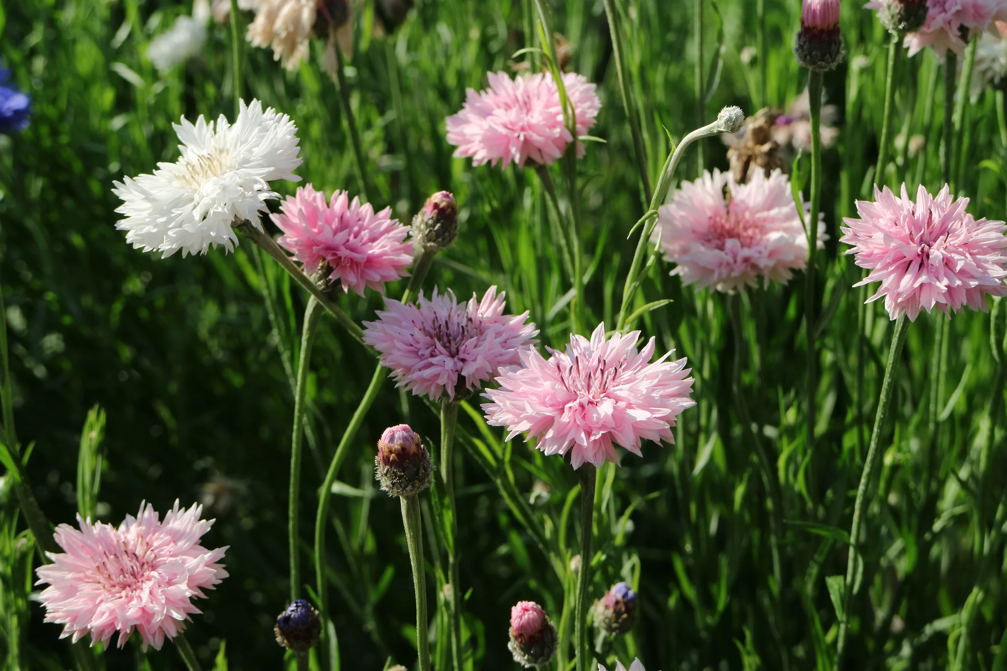Cornflower is also known as bachelor button. Flowers are a medium pink, and plants grow to 36 inches tall. Suitable for cutting, beds and borders, flower mixtures, and the pollinator garden. Flower petals are edible.
