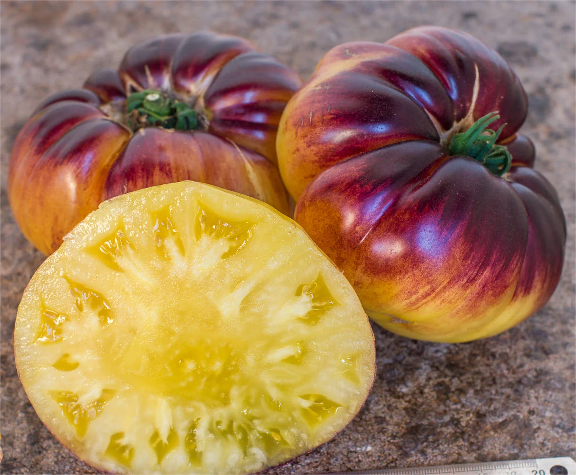 An amazing tomato variety. Sart Roloise tomato is a beefsteak type tomato that grows between 200 to 350 grams. This variety has gained popularity really quickly because of it's taste & excellent look. In a sunny environment the top part of the tomato becomes black and creamy white on the bottom end. An extra ordinary variety. One great tomato variety to have in your backyard!